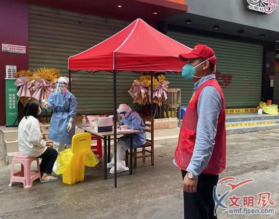 陳亮協助維護核酸檢測秩序(翔安區委文明辦供圖)