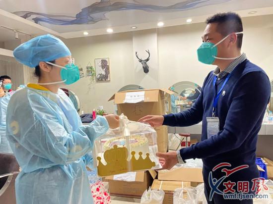 陳亮為抗疫工作人員送去生日蛋糕(翔安區委文明辦供圖)