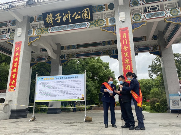 漳平市櫸子洲公園新時代文明實踐特色點開展“云祭掃”活動。志愿者們在櫸子洲公園疫情防控入口處向進入公園的行人宣傳并引導他們用手機關注“文明龍巖”微信公眾號,對英烈進行網上祭掃,在線上向革命先烈鞠躬獻花并表達哀思,在緬懷革命先輩的情懷中進一步堅定理想信念,汲取感恩奮進的精神力量。引導市民緬懷抗“疫”英雄,致敬“新時代最可愛的人”。