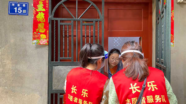長樂區(qū)委文明辦黨員志愿者們入戶調查 (長樂區(qū)委文明辦供圖)