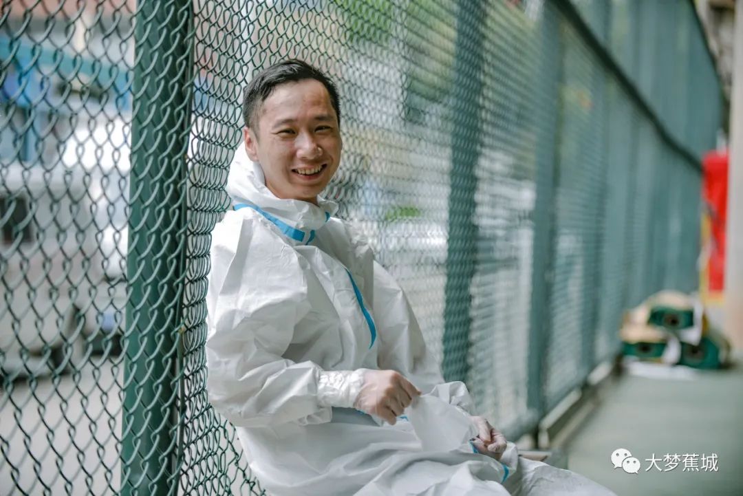 但血肉之軀總會(huì)有疲憊需要休息的時(shí)候,連續(xù)7個(gè)小時(shí)信息登記工作后,王赟的工作暫告一段落。在清理消殺完臺(tái)席,他卸下防護(hù)面罩,取下口罩,露出了疲憊又燦爛的笑容。“大家都一樣,工作的時(shí)候神經(jīng)高度集中,精力非常旺盛,在結(jié)束的那一刻,疲憊感就一擁而上了。”