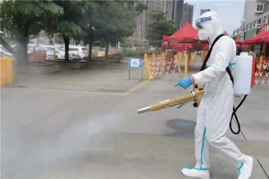 在興賢路中段春江天鏡項目,各級干部、志愿者和項目管理人員齊出動,對施工場所、辦公室、宿舍區等部位進行全面清理消殺,確保項目復工后施工場所衛生整潔。