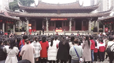 縣關工委聯合有關單位,在文廟舉行一年級新生拜孔圣、點朱砂、授紅蛋活動。(資料圖)
