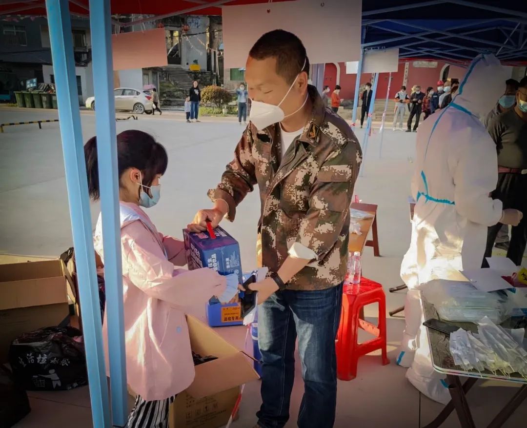 在核酸檢測工作中,群眾的支持配合為筑牢疫情防控屏障注入了無窮動力。在三都鎮,有為一線工作者送去暖心牛奶的稚童、有主動加入“大白”隊伍的大學生志愿者、有“戰疫”不缺席的百歲老人,也有退休在家協助社區疫情防控的老黨員。這些暖心“疫”刻,讓奮戰一線的工作人員收獲無數感動。