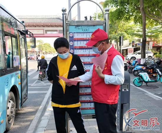志愿者發放“文明出行 清靜車廂”倡議書(翔安區委文明辦供圖)