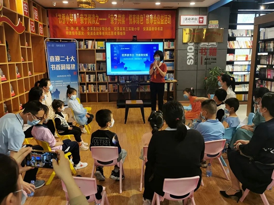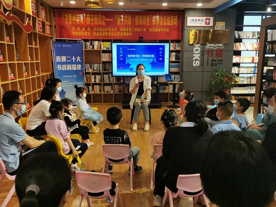 現(xiàn)場,安溪縣故事爸媽志愿者蔡瑜萍講訴了身邊綠色環(huán)保低碳故事,闡釋了安溪“綠水青山就是金山銀山”的生動實踐,還與家長、孩子進行互動,一起講故事。活動現(xiàn)場還進行了詩詞、散文朗誦,并抽取了“推進全民閱讀 建設(shè)‘書香安溪’”購書抵用券。