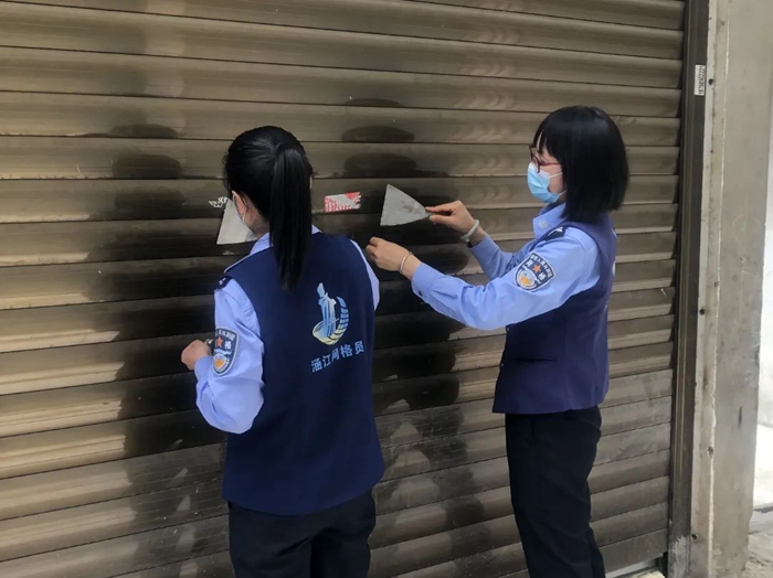 “這里有一張小廣告鏟不掉,用噴壺噴一噴軟化一下試試……”上午9點多,在白塘鎮(zhèn)田岑小區(qū),網(wǎng)格員手拿鏟刀、噴壺,對樓道內(nèi)的小廣告進行了全面清理,實在無法鏟除的小廣告,則用乳膠漆進行覆蓋性粉刷。