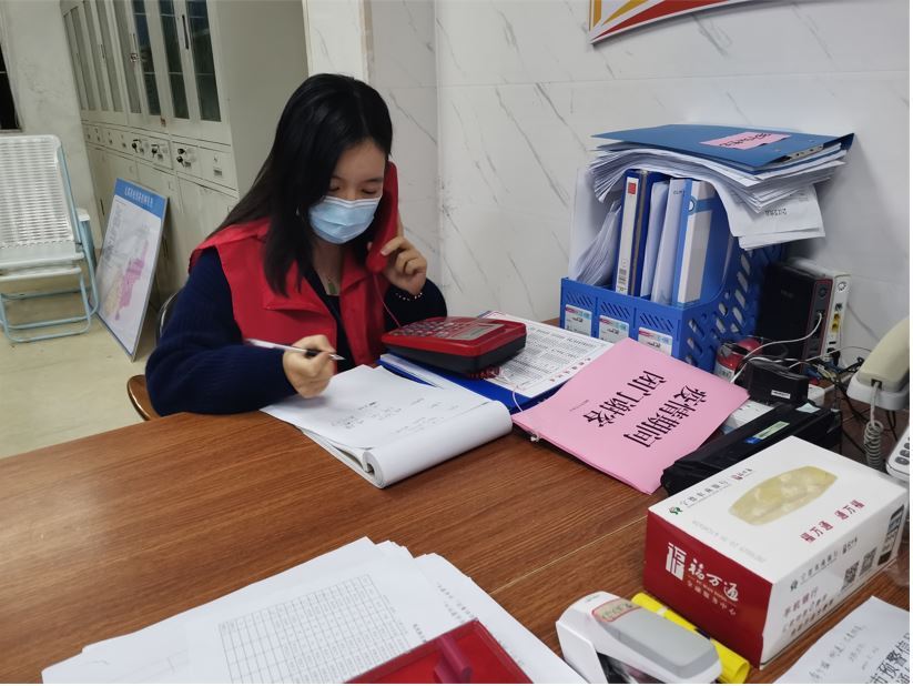 曾彤彤在撥打流調電話。寧德市九都鎮人民政府 供圖