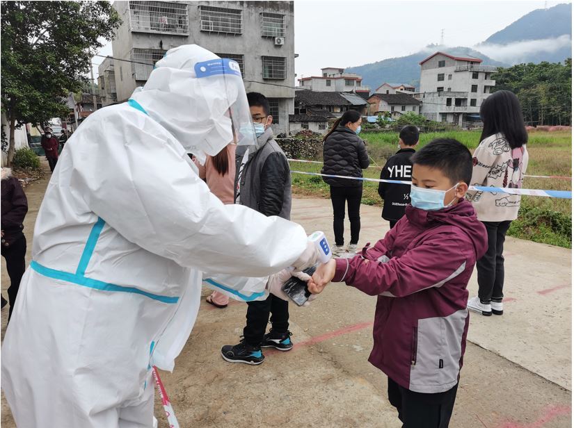 陳長榮在做全員核酸志愿者,負責測溫。寧德市九都鎮人民政府 供圖