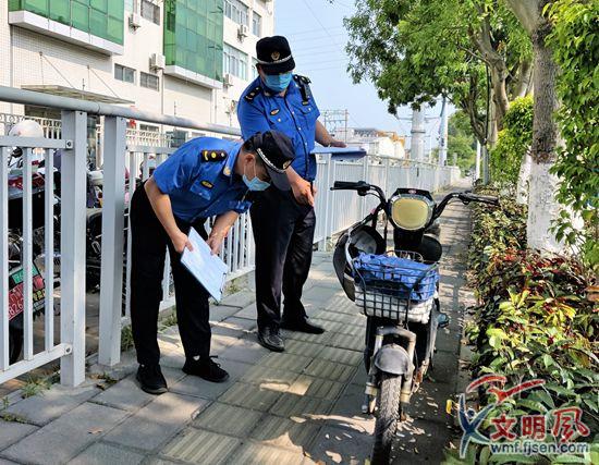平日里,因電動自行車流動性大,不按規定停放的現象突出。為確保及時發現問題并快速處置,同安區城管局采取“日常巡查、錯時巡查、聯合巡查和重點巡查”相結合的巡查方式,高頻次巡查轄區主次干道、公交站點、公園廣場、居住小區周邊以及電動自行車經營維修店等重點區域,持續加大日常管理力度, 對無序停放、占用人行道、占用盲道、占用綠化帶的電動自行車進行規范擺放,對于重點區域、突出問題集中整治、定向突破,推進整治行動常態化。