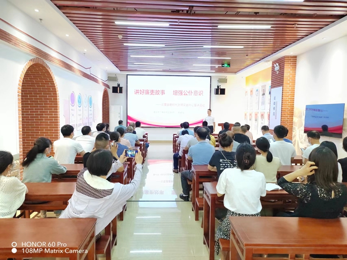 文明風4月29日訊 4月28日,云霄縣新時代文明實踐中心開展首場“喜迎新時代風采,喜迎二十大召開”理論宣講活動,此次活動邀請了漳州市新時代宣講師蔡鎮元為大家作題為《講好廉史故事 增強公仆意識》的講座,講述云霄縣10位廉吏廉潔自律、奉公執法、造福百姓的典型事跡。