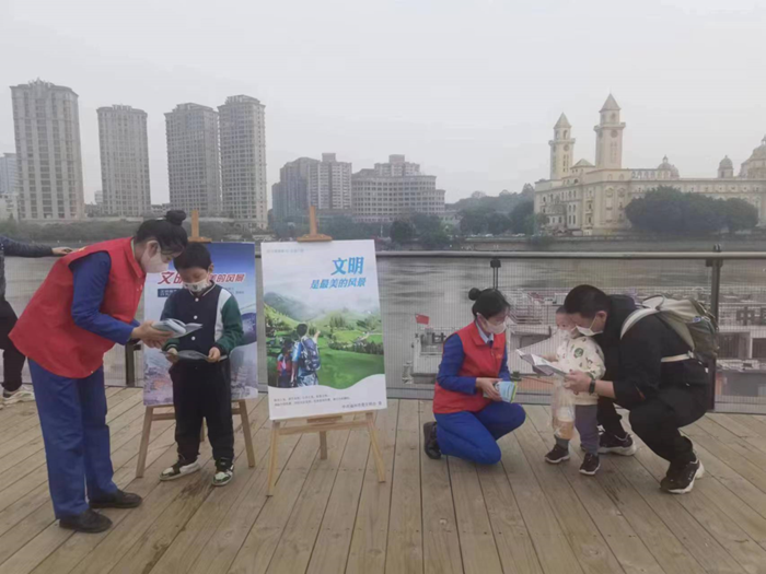 志愿者們向游客宣傳文明旅游(臺江區(qū)委文明辦供圖)
