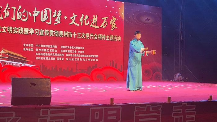 南安六中黃桂皇同學在文化進萬家活動舞臺上表演快板