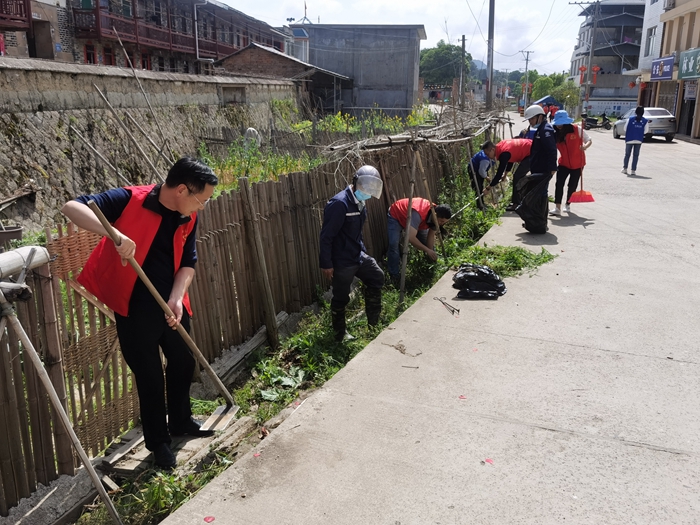 志愿者清除路邊雜草(永泰縣委文明辦供圖)