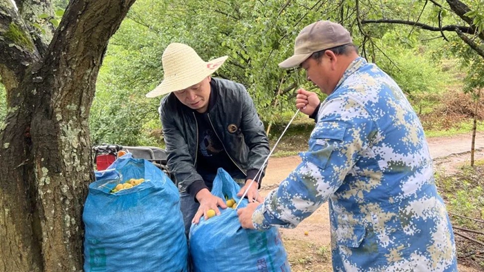 黨員志愿者幫助農(nóng)戶采摘青梅(永泰縣委文明辦供圖)
