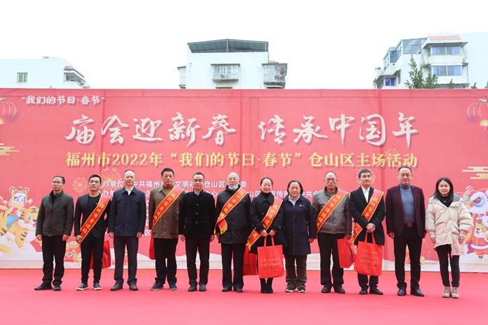 “廟會迎新春 傳承中國年”——福州市2022年“我們的節日·春節”倉山區主場活動,邀請道德模范前來參加并送上慰問品(倉山區委文明辦供圖)
