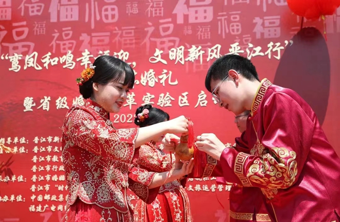 活動還舉行了晉江市省級婚俗改革實驗區啟動儀式。婚俗改革事關千家萬戶,晉江市將積極推進全市婚俗改革試點工作,倡導樹立新型婚俗觀,傳承良好家風家教,培育文明向上的婚俗文化,在全社會營造婚事新辦的濃厚氛圍,為愛“減負”,為幸福加分。(晉江市委文明辦供稿 張燕妮)