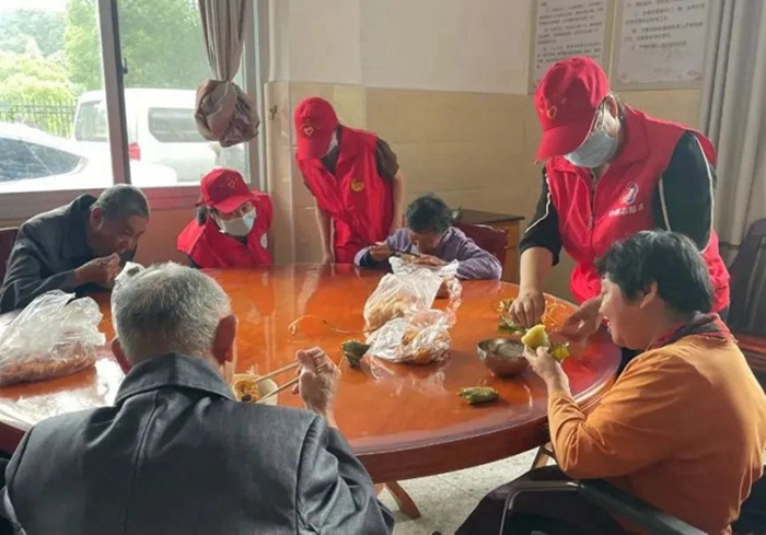 志愿者們拎著大包小包的粽子、糖棗、豆腐走進敬老院,親手交到老人們手中并陪他們聊家常,城區社區衛生服務中心的醫護人員為老人們測量血壓、血糖,詢問其日常飲食起居及目前身體狀況,叮囑老人在逐漸炎熱的夏季里要做好防暑降溫。隨后,志愿者們還幫忙打掃了敬老院庭院內的衛生。