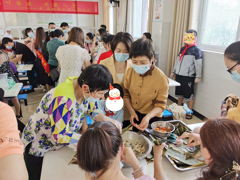 “我們先平鋪一層糯米,放上肉和咸蛋黃,再鋪一些米……”“對了,就是這樣,加油!”隨后,在志愿者的指導和鼓勵下,孩子們親身體驗包粽子的樂趣,開心的笑容和認真的表情,讓學校餐廳瞬間變成了歡樂的海洋。
