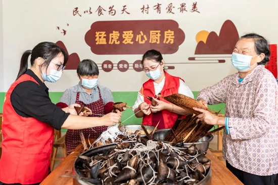 下課后,留守老人和鄰里中心的志愿者們一同包粽子,開展愛心食堂。鄰里中心黨員先鋒隊還貼心地為行動不便的老人及殘疾送上粽子和愛心午餐,衛生院志愿服務隊還上門進行義診。