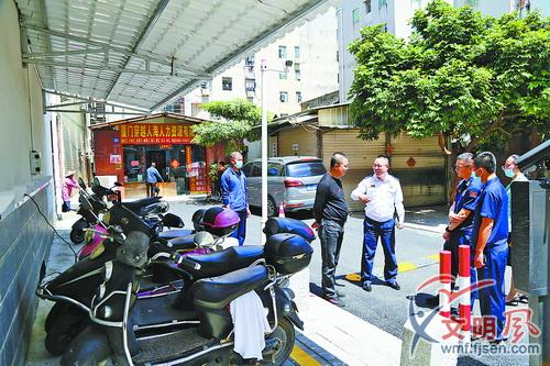 同安消防大隊到城中村調研電動自行車充電樁選址工作。(同安消防大隊供圖)
