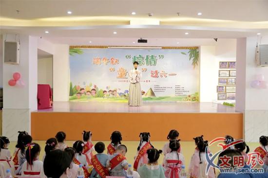 活動在小朋友們動感十足的籃球操中拉開帷幕。現(xiàn)場,臺灣青年身穿漢服,講述端午節(jié)起源和習俗,并通過游戲互動讓小朋友們了解了節(jié)日知識,共同感受傳統(tǒng)文化氛圍。