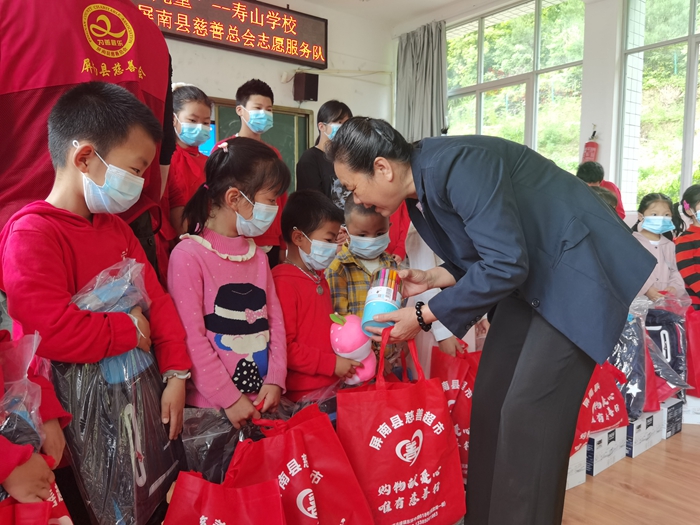 志愿者為兒童送去節(jié)日禮物。屏南縣慈善總會供圖