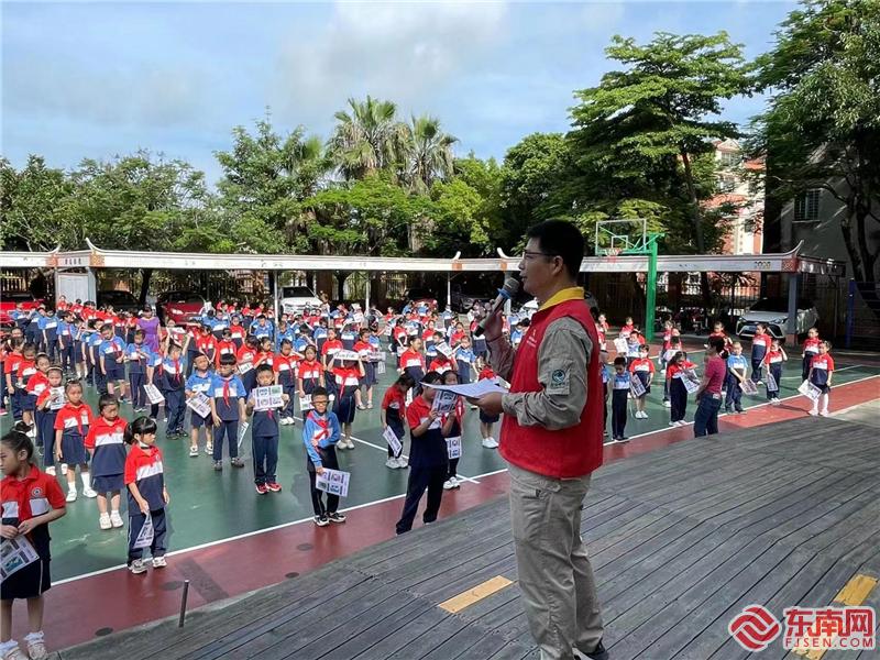 志愿者向?qū)W生們講解安全用電、觸電防范等相關(guān)知識(shí)(國(guó)家電網(wǎng)福建電力“雙滿意”廈門(mén)僑英共產(chǎn)黨員服務(wù)隊(duì)供圖)