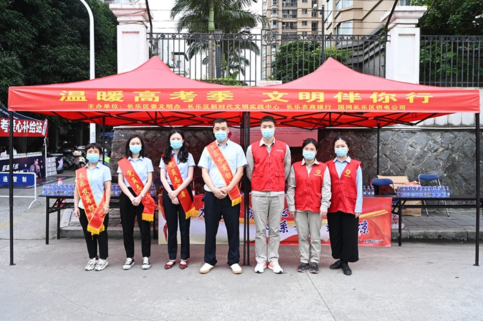 為了給高考學(xué)子加油鼓勁,給考生和家長(zhǎng)們帶來一份夏日的清涼和關(guān)愛,長(zhǎng)樂區(qū)新時(shí)代文明實(shí)踐中心、長(zhǎng)樂區(qū)委文明辦、長(zhǎng)樂區(qū)交通運(yùn)輸局、長(zhǎng)樂農(nóng)商銀行、國(guó)網(wǎng)長(zhǎng)樂區(qū)供電公司、中國(guó)工商銀行長(zhǎng)樂支行共同開展“愛心送考 文明護(hù)航”新時(shí)代文明實(shí)踐活動(dòng),為高考之路保駕護(hù)航。
