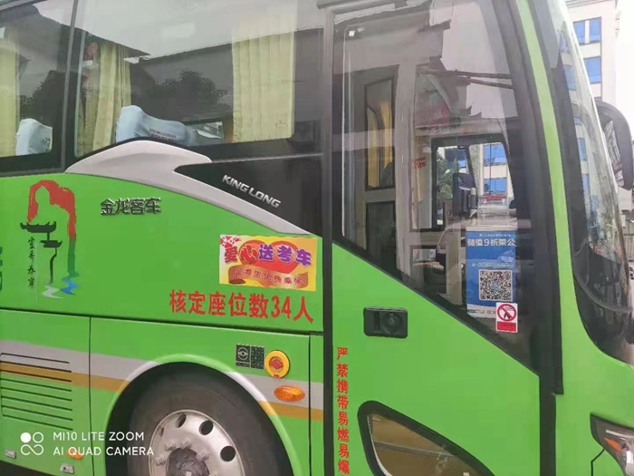 為了確保考生乘車安全,泰寧縣新時代文明實踐中心委托縣交通運輸局對加入愛心車隊駕駛員的資質、車輛性能進行全面檢查,并督促營運企業對途經高考考點線路的車輛出車前進行全面消毒,嚴格落實駕駛員崗前檢測、車輛消毒消殺、規范戴口罩等疫情防控舉措,制定完善突發情況應急預案。閩通公共交通有限公司加強途經考場周邊線路的現場管控與協調,保障公交線路、場站和站點的安全與暢通,增加考生入場、散場時段的機動運力,縮小早中晚高峰時段的發車間隔,利用智能監控系統實時查看車輛運營動態,根據實際需要通過調整發車間隔、加密班次等手段科學調配,保障考生出行。