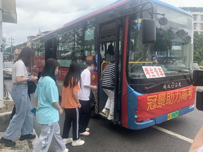 閩運永泰分公司相關負責人表示,考試期間,專車將配合學生的考試時間,提前45分鐘從酒店出發,確保學生能提前到達考場。每輛車上都由學校老師帶隊,接送學生參加考試。同時,為響應疫情常態化防控要求,每輛接送車每天都會消毒。此外,在為期三天的考試里,全縣考生持準考證可免費乘坐公交車。