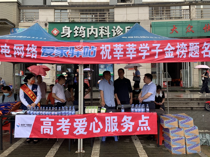 在考點外設立“愛心驛站”高考服務點(永泰縣委文明辦供圖)
