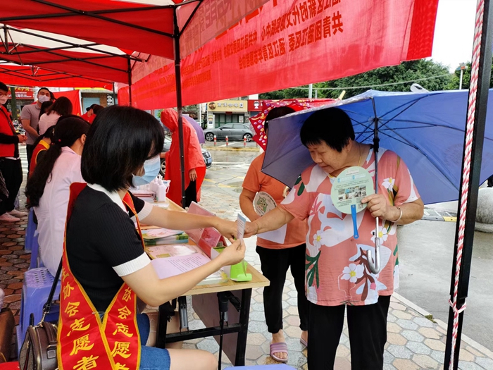 為家長們提供扇子、礦泉水等愛心便民物品 涵江區(qū)委文明辦供圖