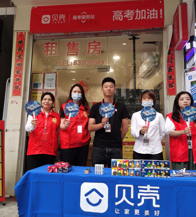 臺江區委文明辦聯合貝殼找房福州志愿服務隊,在轄區新時代文明實踐志愿服務驛站設立“愛心高考驛站”,為考生與家長提供一站式貼心服務。高考期間,“愛心高考驛站”為有需要的考生和家長提供應急接送、應急上網、應急充電、應急打印、休憩避雨、應急藥箱、引路指導、消暑物資等8項護考服務,讓廣大考生和家長感受到“身邊好鄰居”的溫暖。同時,愛心高考驛站以臺江為中心,將服務范圍擴展至全市367家門店,為更多考生家長提供便民服務。高考首日,“愛心高考驛站”提供愛心高考物資超300份,服務考生、家長100余人次。