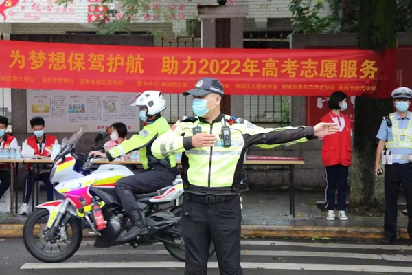 道路交通安全一直是高考期間重要的一環,為重點凈化考場周邊路面停車秩序,泉州市交警部門在考場周圍重點路段開展巡邏,及時疏堵保暢,確保考生赴考道路暢通無阻,并為考生提供便民服務。為減少意外事故對考生的影響,泉州市通過組織動員轄內應急救援志愿服隊、直屬志愿服務隊伍,在各地高考考點、交通要點設立服務點,配備應急救援救護車輛、急救包、應急救援裝備等方式配合應急、醫療、交警、消防等部門開展應急輔助志愿服務。