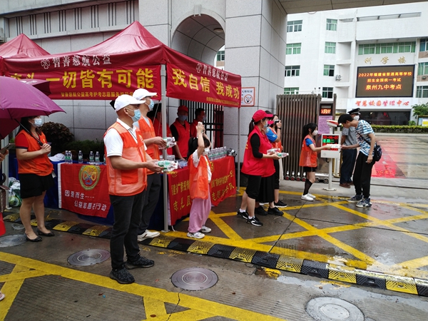 泉州九中考點外,志愿者們正在為出考場的考生免費送水。泉州市委文明辦 供圖