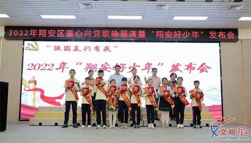 文明風(fēng)6月13日訊(夏菁 洪黨育)為引導(dǎo)青少年從小聽(tīng)黨話、感黨恩、跟黨走,培養(yǎng)擔(dān)當(dāng)民族復(fù)興大任的時(shí)代新人,6月10日下午,廈門市翔安區(qū)“強(qiáng)國(guó)復(fù)興有我”——童心向黨歌詠展演活動(dòng)暨“翔安好少年”發(fā)布會(huì)在福建教育學(xué)院附屬翔安第一小學(xué)舉行。