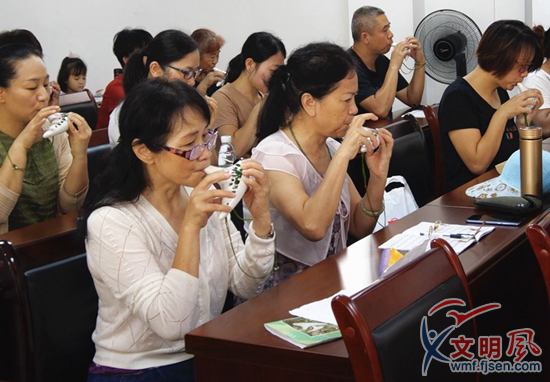 居民們學習陶笛吹奏(祥美社區供圖)