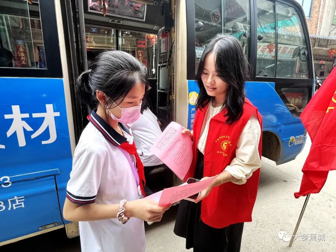 志愿者給學生發放宣傳資料。蕉城區委文明辦 供圖