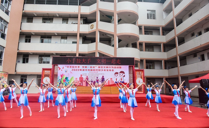 文明風6月16日訊 為深入貫徹落實習近平新時代中國特色社會主義思想,積極培育和踐行社會主義核心價值觀,進一步加強漳平市中小學學生、廣大市民文明行為習慣的養成,提升文明素養,6月10日,漳平市委文明辦、市直機關黨工委、市教育局等多部門聯合在漳平市城關小學開展爭創全國文明城市“小手拉大手 文明一起走”規范文明行為活動暨2022年漳平市新時代好少年發布會。副市長聶鑫及相關單位負責人參加啟動儀式。
