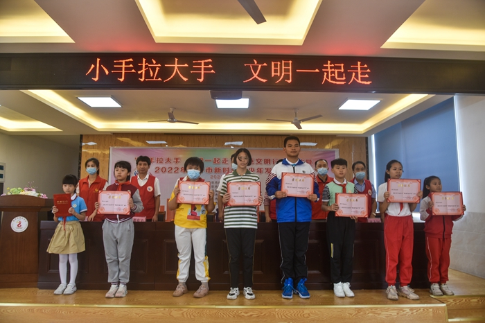 “新時代好少年”發布會上,市委文明辦主任曾仙芳宣布了2022年漳平市新時代好少年名單,相關部門領導為漳平市2022年漳平市“新時代好少年”頒發證書。