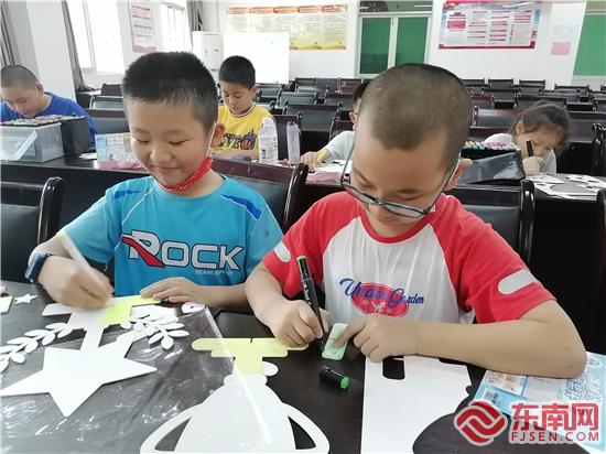 孩子們在認真制作獎杯(盧藝瓊 攝)