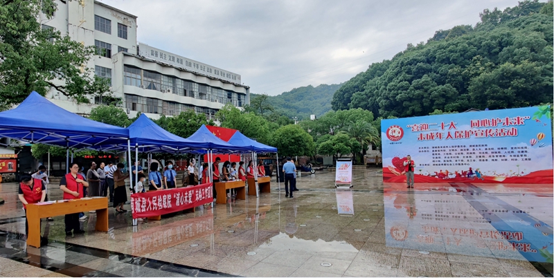 文明風6月22日訊 為深入宣傳貫徹《中華人民共和國未成年人保護法》,提高未成年人保護意識,保障未成年人合法權益,6月22日上午,浦城縣未成年人保護委員會成員單位在浦城縣方志敏廣場開展“喜迎二十大,同心護未來”為主題的現場宣傳活動。