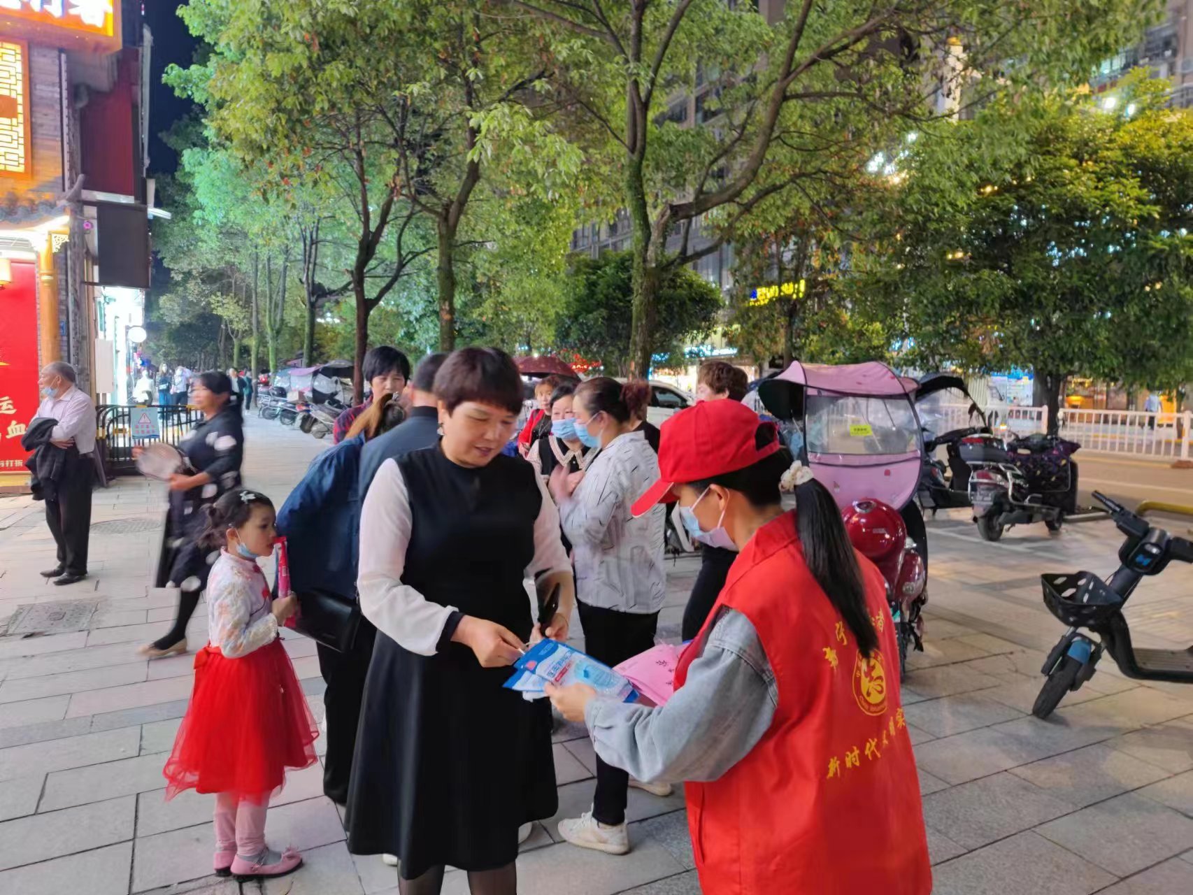 2022年5月9日志愿者走街串巷開展疫情防控和創建文明縣城宣傳活動。葉細林 攝