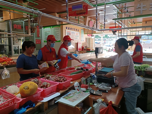 黨員干部向沿街店面及周邊居民分發宣傳材料