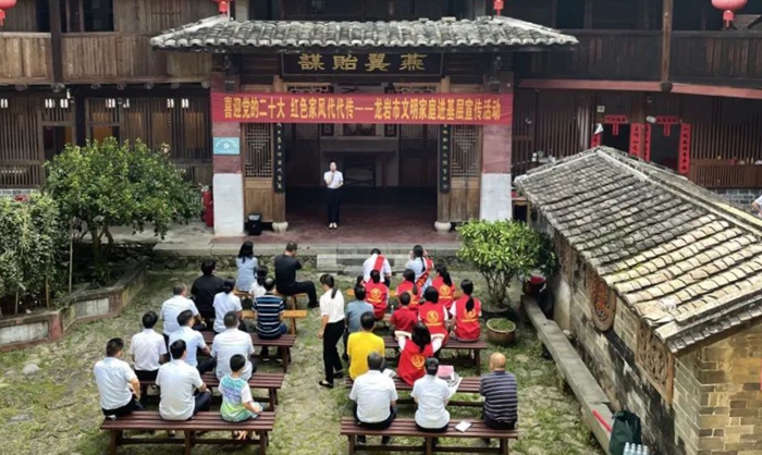 文明風6月29日訊 為貫徹落實習近平總書記關于注重家庭家教家風建設重要論述,充分發揮家庭家教家風建設在培育時代新人,弘揚優良家風的重要作用,6月25日,由中共龍巖市委文明辦主辦,中共永定區委文明辦、中共湖坑鎮委員會、福建省客家土樓旅游發展有限公司承辦的“喜迎黨的二十大 紅色家風代代傳”——龍巖市文明家庭進基層宣傳活動走進永定區湖坑鎮,通過聆聽宣講、捐贈書籍、參觀展廳等形式,筑牢基層黨員干部家庭文明建設。龍巖市委文明辦副主任胡長纓、永定區委文明辦主任陳森昌出席活動。