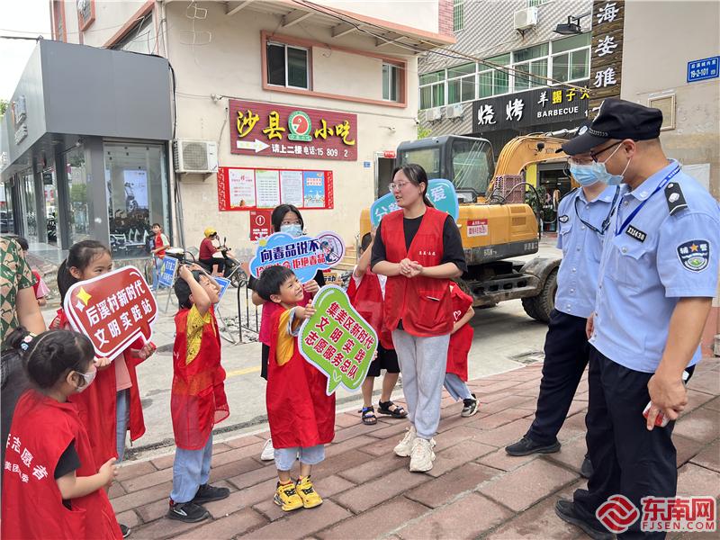 后溪村新時代文明實踐站“國際禁毒日”主題宣傳活動現場,小朋友跟著警察叔叔一起學習毒品的危害。(詹滟滟 攝)
