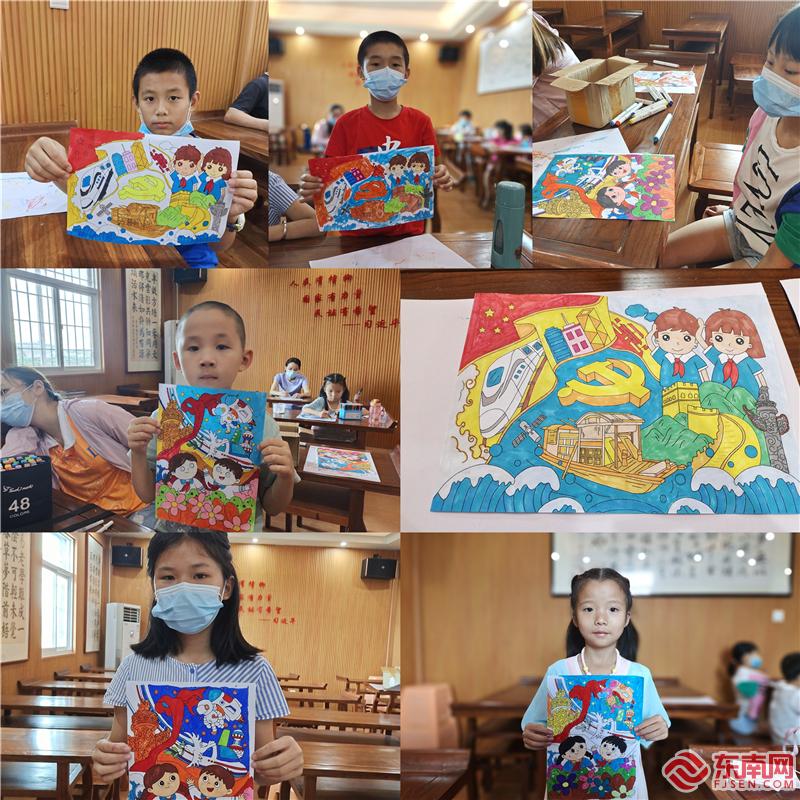 小朋友們展示繪畫作品(頂許村新時代文明實踐站 供圖)