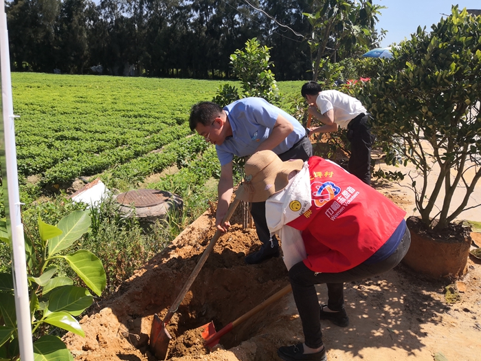 活動最后,共建單位還一同來到大坪村產業路,種下近百珠紅葉石楠球和金森女貞球,為大坪村增綠添彩。