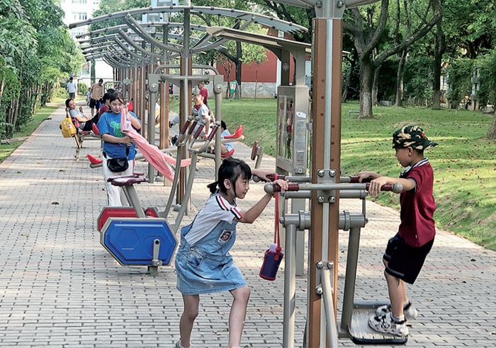 暑假來臨,涵江智慧體育公園里人頭攢動。涵江區委文明辦供圖